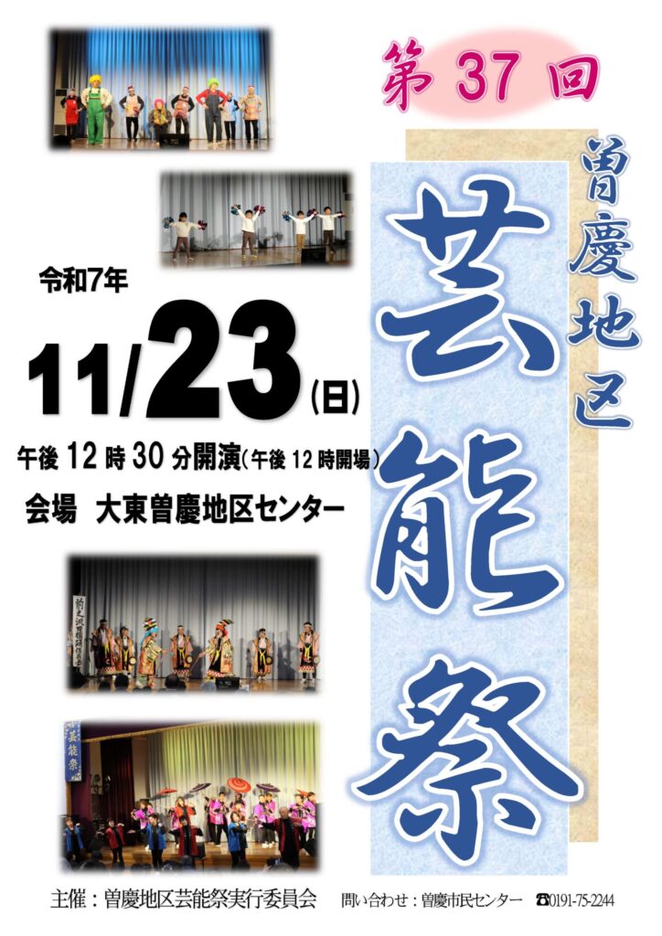 今年で37回目となる「曽慶地区芸能祭」が11月23日(日)に開催されます。本番に向けて磨きをかけた各自治会からの演目や各種団体の発表等、バラエティに富んだ20演目で皆さまのご来場をお待ちしています。